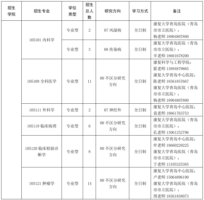 康复大学研招办:傅老师,0532-57787205,邮箱:kdyzb@uhrs.edu.cn